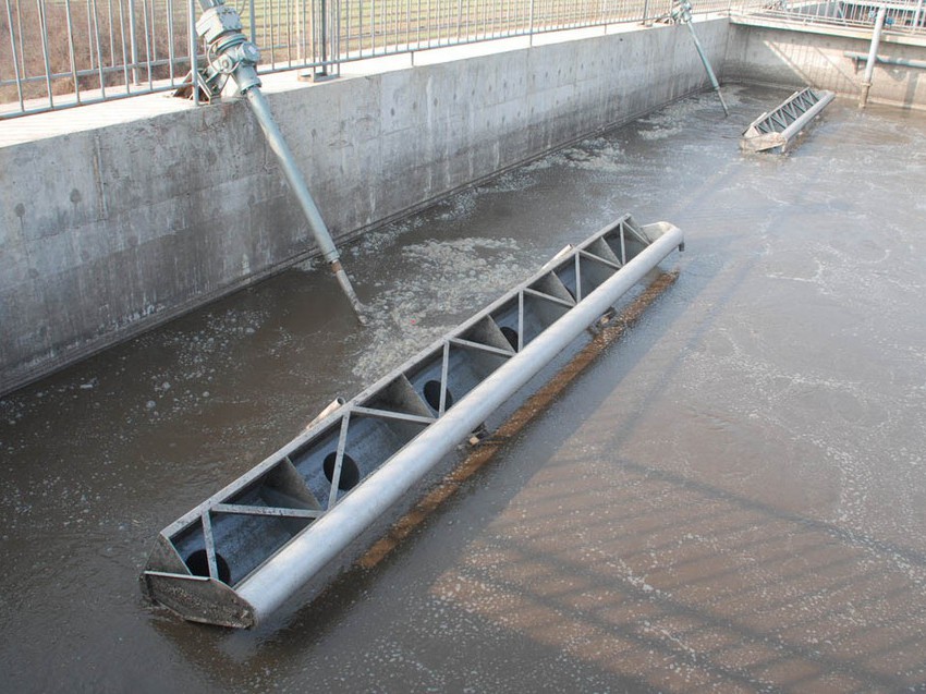 潷水器是SBR工藝采用的定期排除澄清水的設備,它具有能從靜止的池表面將澄清水潷出,而不攪動沉淀,確保出水水質的作用。由于SBR法工藝采用間歇反應,進水、反應、沉淀、排水在同一池內完成,無須二次沉淀池和污泥回流設備,因此具有占地少、投資小、效率高、出水水質好等優點;同時將多個 SBR 池連接起來,還可以具有傳統污泥法工藝的連續性,又具有典型 SBR 工藝的間歇性,適用于水質、水量、變化大的需要,因此得到國內外的廣泛應用,該產品有追隨水位連續排水定期排水的功能,而且有較高的可靠性。